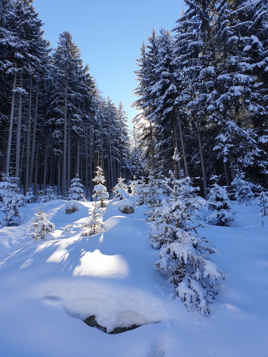 Heute war ich wieder (wie jede Woche) die Fütterung auffüllen. Mittags minus 7 °C, das ist schon eine Ansage.