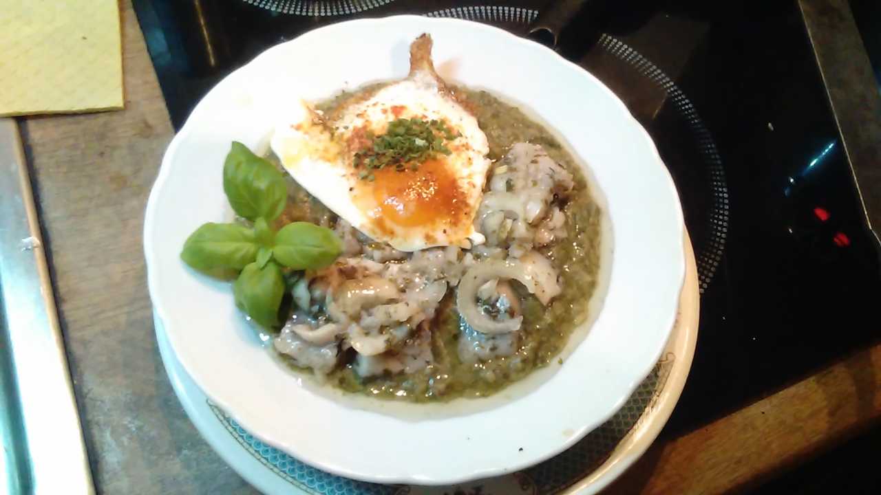 Hab vier Kilo Spätzle gemacht, zwei Kaninchen gebraten, drei Kilo Pferderouladen zubereitet, dazu Feld u. Endiviensalat jede Menge. Die Gäste haben die Suppe und den Nachtisch mitgebracht.