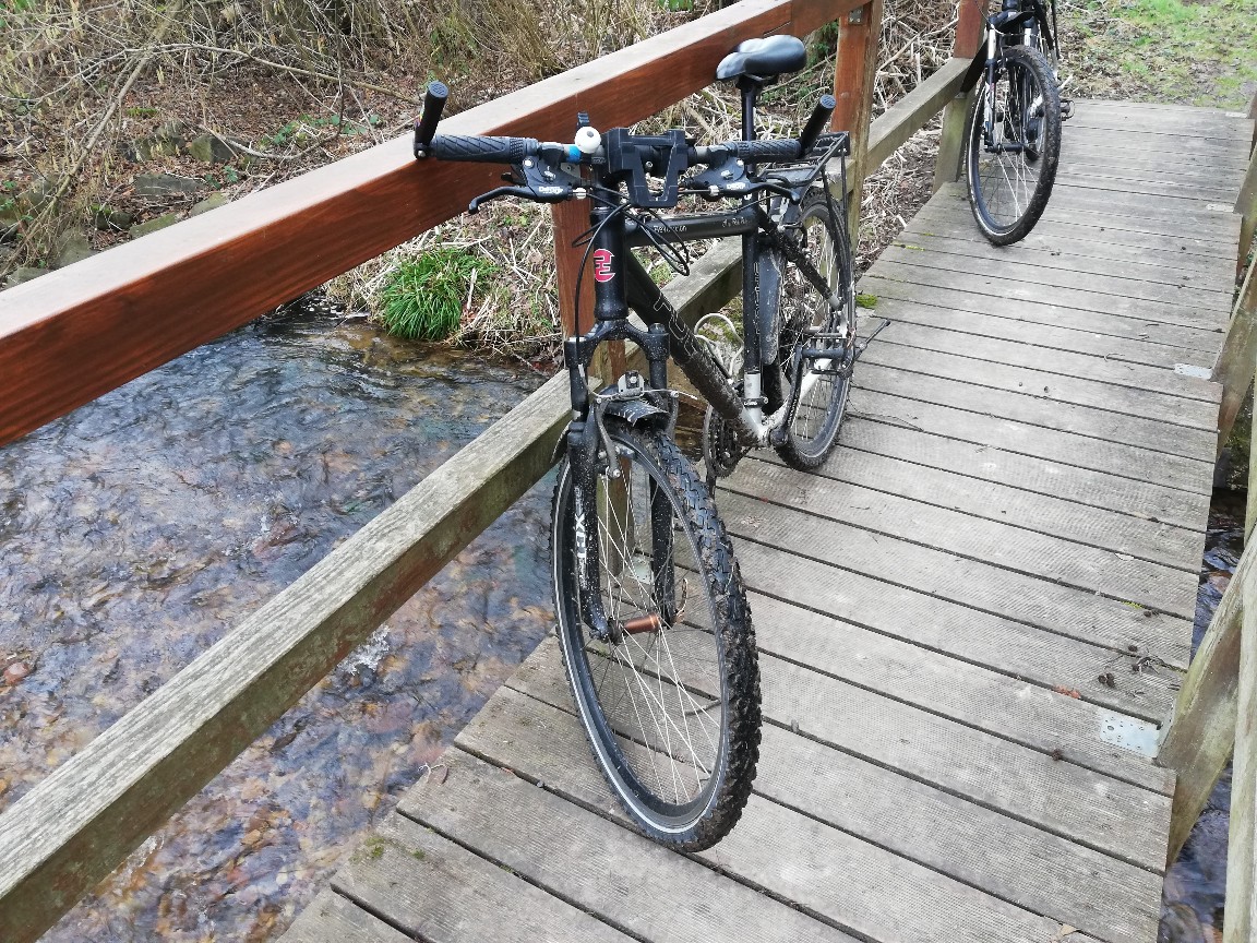 Mittags dann das Rad mit nach Marburg genommen (Elkes Doublette holen) und Freund Gero vorgeführt, der damit interessehalber eine Runde gefahren ist. Gefällt ihm leistungsmäßig, obwohl er mehr auf Nabenmotor vorne mit hinten Roloff (a Traum!) steht.