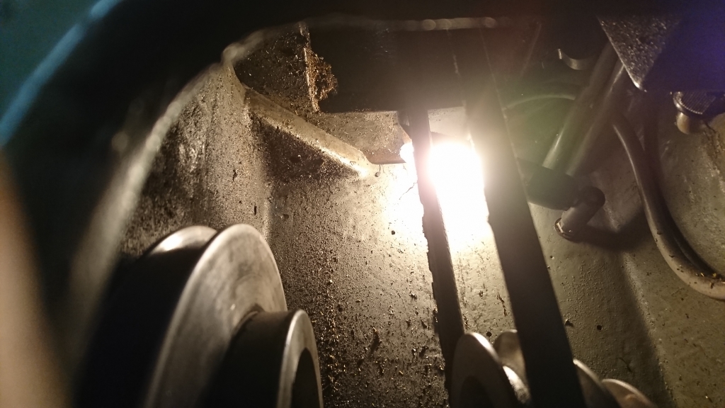 Der lange gerippte Keilriemen ist brüchig und soll ersetzt werden.