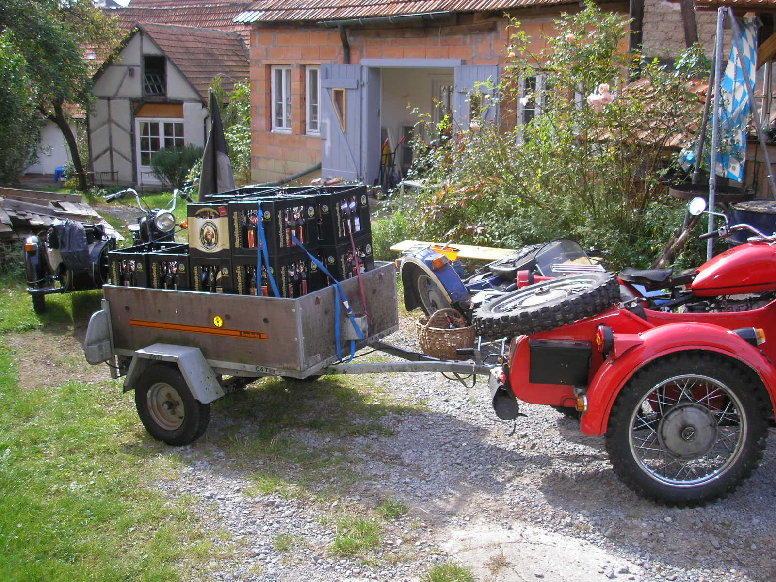 Bier beim Lois hat hin und wieder komische Auswirkungen, der Beiwagenrahmen ist schon beim beschichten