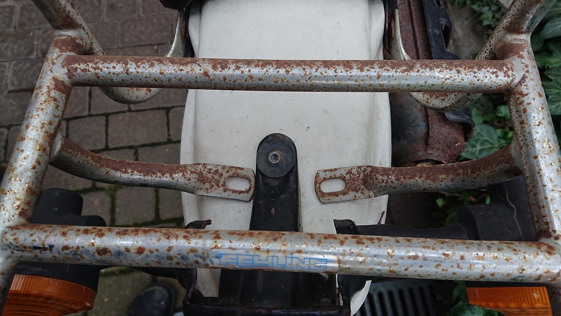 man soll ernsthaft einen Gepäckträger auf einem Kunststoffkotflügel abstützen?
