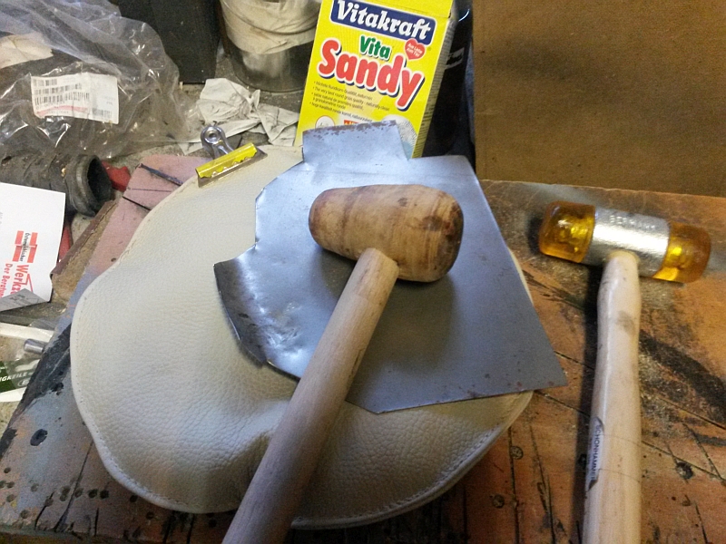 Der Hammerkopf war mal ein Obstbaum-Ast, Zwetschge oder Kirsche, aus unserem Garten.