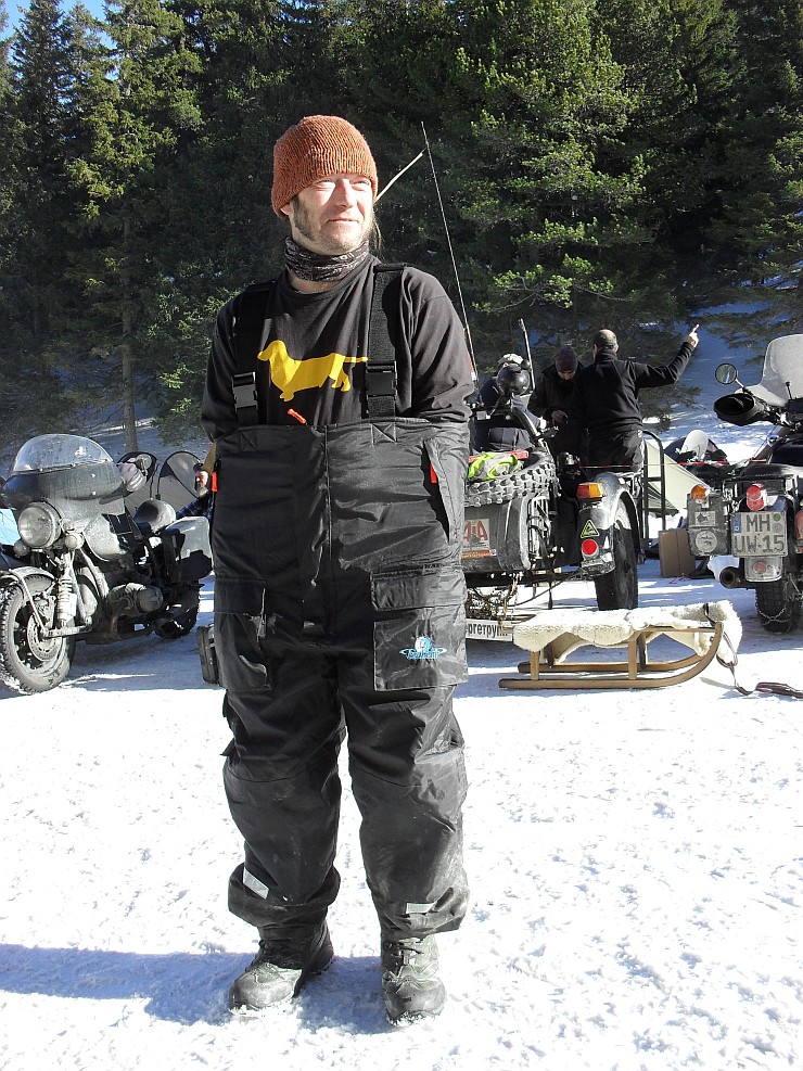 Ich habe eine Neopren Strampelhose aus dem Angelbedarf. Nicht ganz wasserdicht, aber ziemlich. Warm und bequem. Der Latz geht weit nach oben, so daß es nicht reinzieht und (das war für mich kaufentscheidend) der Hosenstall geht bis ganz runter auf, so daß auch ein normal gebauter männlicher Mitteleuropäer unfallfrei pinkeln kann.
