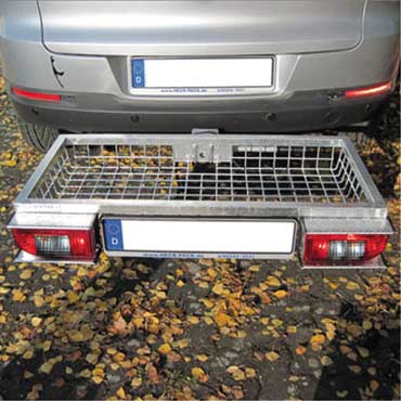 Eher nicht, es sei denn, er fährt ohne hinteres Kennzeichen :) (Dokker hat Türen). Sinnigerweise ist dies am Gehflügel angebracht, den man nicht separat festmachen kann. Ggf. mit einem Strick... :gruebel: