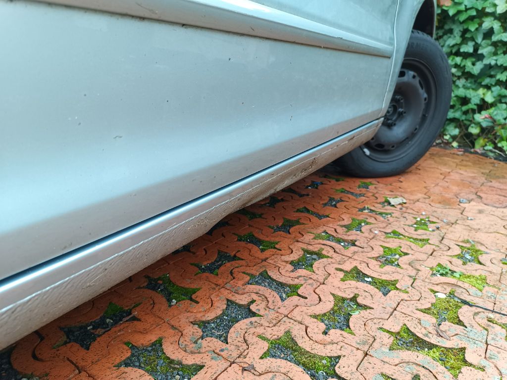 vorne rechts am Kotflügel und am Schweller unten leichte !!! Dellen und kleine !! Kratzer vom Einparken meiner Mutter in der Garage.