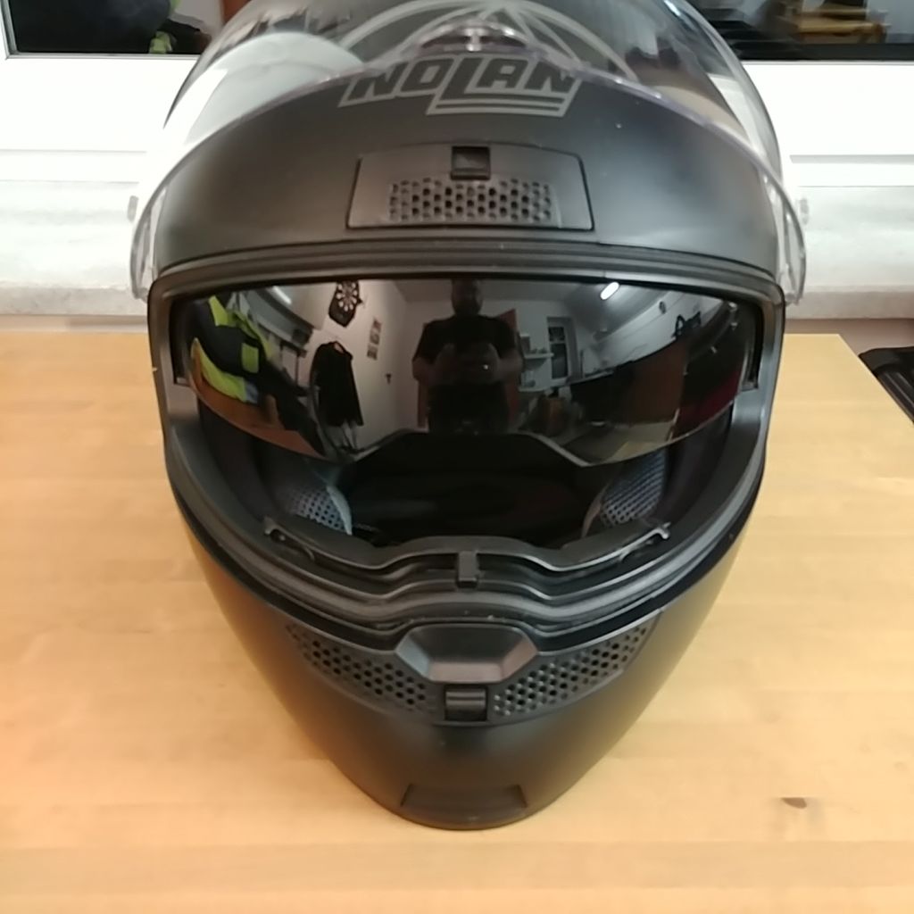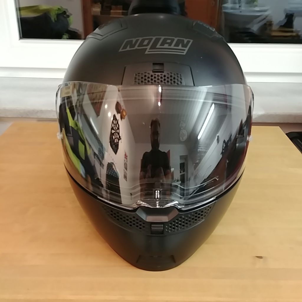 Nolan N85, mattschwarz, Größe M, fällt etwas größer aus, bei Shoei habe ich normal L, der Nolan saß aber auch etwas strammer