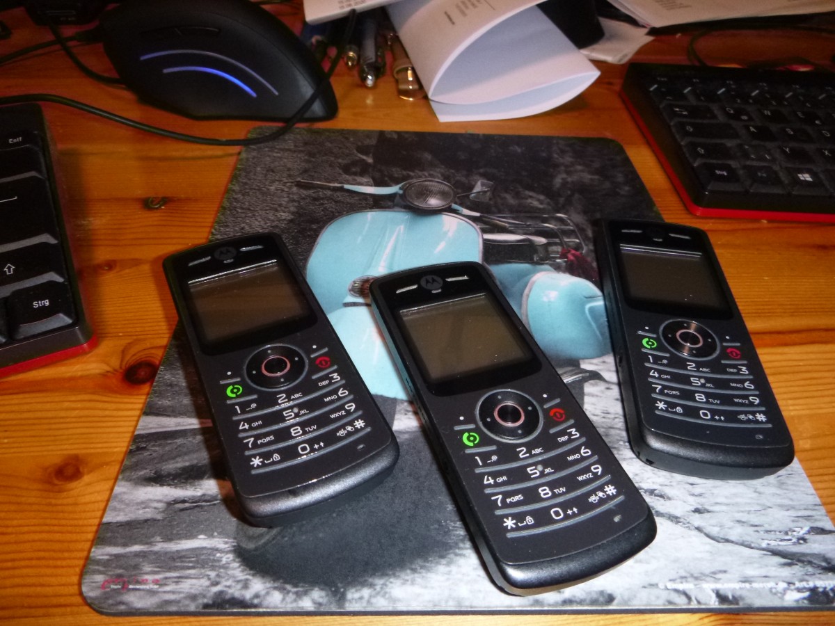 Vielleicht gibts ja doch noch den einen oder anderen Smartphone-Verweigerer. Für die habe ich 3 Motorola W156 abzugeben, also zu verschenken. Sind nette kleine Handies mit langer Batterielaufzeit (1 Woche ca.), aber ohne Android, Internet, MP3-Playser etc. Die Dinger können also wirklich nur telefonieren.