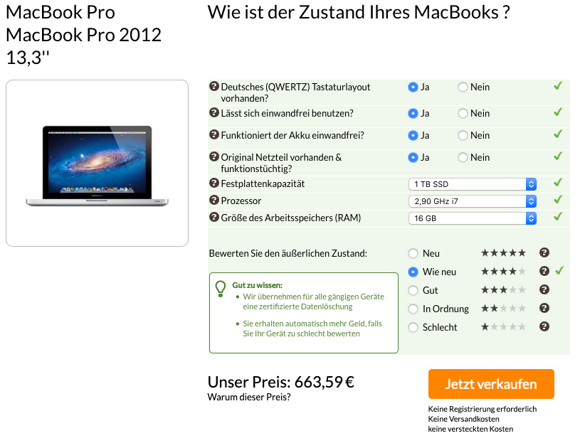 Preisvorschlag vom HW-Aufkäufer ohne Zubehör, siehe Screenshot