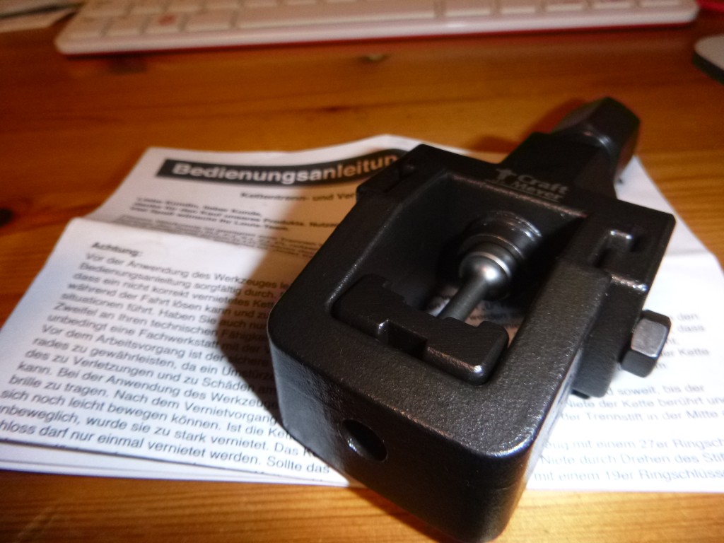 Zweiräder mit Kettenantrieb hab ich keine mehr, also können die Kettentrenn- und Vernietwerkzeuge weg.