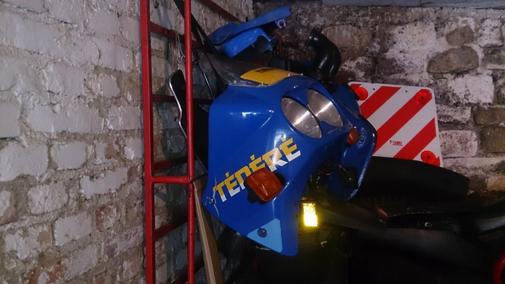 Tank, Kanzel mit Doppelscheinwerfer, Tacho und Drehzahlmesser, Seitendeckel und Luftfilterkasten (der unter dem Tank).