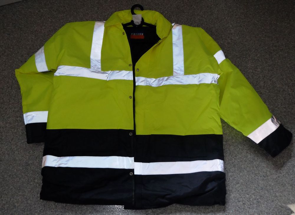 Wasserdichte Jacke im modischen Straßenwärter-Design, damit wird man auch gesehen, jedenfalls wenn man nicht im Windschatten von Schandwagen fährt.