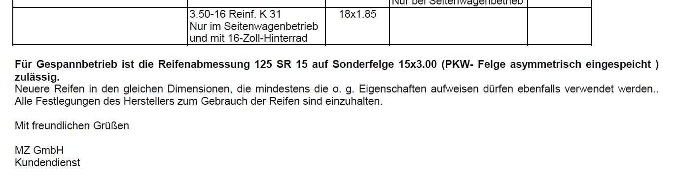 Uwe Steinbrecher hat geschrieben:Deshalb fahren die meisten älteren Gespanne inzwischen 135/70 R13 (Smart 1 Vorderräder) dazu werden 3,5 zoll Felgen verwendet.