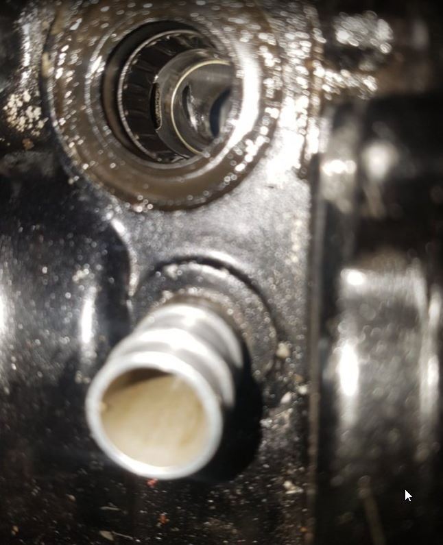 Wenn man jetzt späte Gehäusehälften (zB 3AJ) mit frühen Deckeln (1VJ) kombiniert, dann hat man im Block dieses Gewinde für die Hohlschraube der Ölleitung.