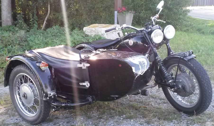 ich möchte meinem Russen-Bastard-Gespann etwas mehr Bremsleistung verpassen. Aktuell werkelt im Vorderrad eine Duplextrommel aus einer BMW /6, das bremst mir etwas zu dyrftig. Die montierte EML-Schwinggabel ist aktuell nur mit einer Bremsmoment-Abstützung an der Schwinge ausgestattet, was durch Verhärten der Federung beim Bremsen die Sache nicht besser macht. Der Beiwagen (URAL-Fahrgestell) ist ungebremst (noch - es soll auch 'ne Bremse rein, ist aber hier nicht das eigentliche Thema).
