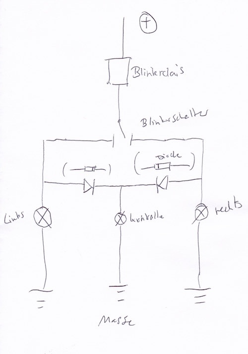 Ich hab grad nen Knoten im Kopf, wie ich das umklemmen muss, damit die Blinkkontrolle geht.