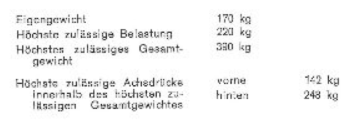 Zulässiges Gesamtgewicht ist 390Kg.