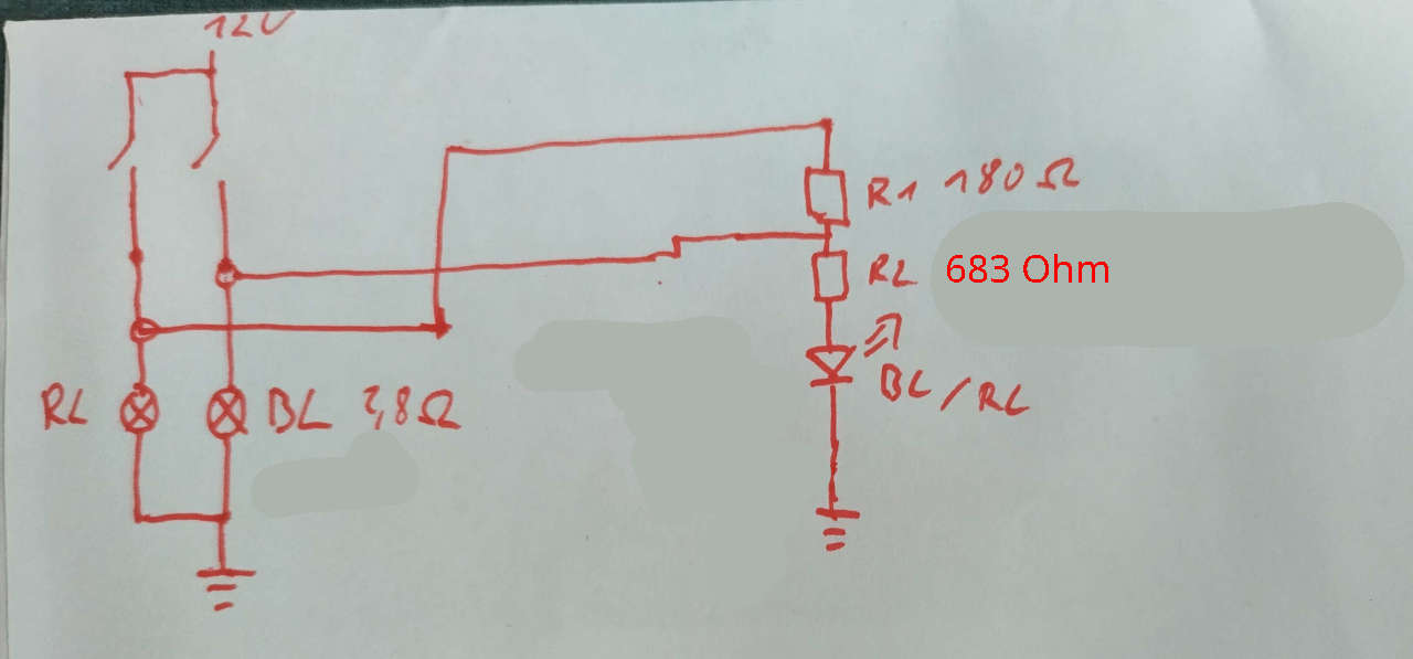 Sobald ich das Bremslicht mit anschließe, verweigert das SW-LED-Rücklicht seine Arbeit. Da zieht sich die Sau wohl eine falsche Masse über die Glühlampe im (motorradseitigen) Rücklicht.