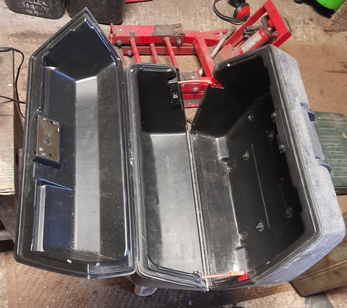 Wobei, die Koffer die ich hab kann ich nicht an die SR hängen weil die Träger , Bild im ersten Beitrag, die ich in meiner Grafflkiste gefunden hab, nicht ans Moped passen. Ich wusste ja nicht mal dass das Schuhträger sind. Meine Koffer haben die versperrbare Verriegelung oben. Zwei Hebel werden 90° verdreht und einer hat ein Schloss.