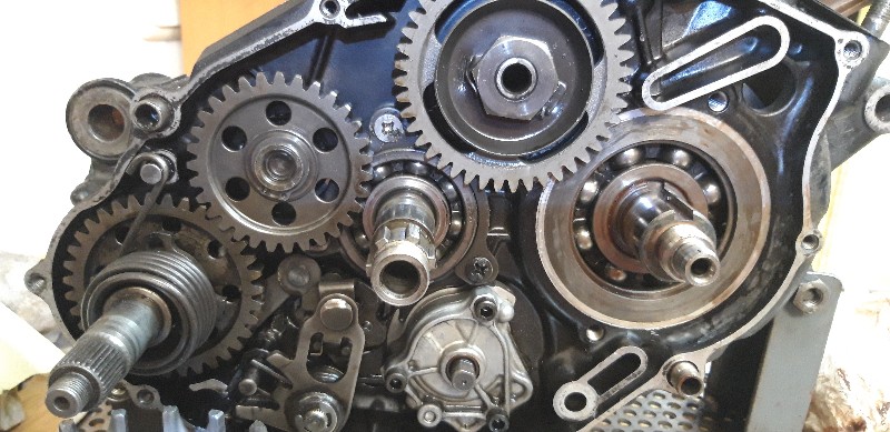 Ich tippe aber eher auf eine Kleinigkeit im rechten Motordeckel, betreffend Kickstarterei oder Dekomechanik.