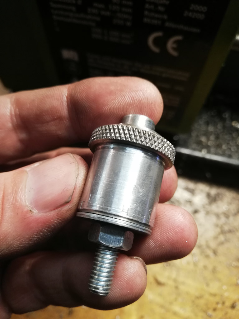 Es kwietscht mal mehr, mal weniger, ich benutze VIEL Schneidöl und versuche, die richtige Mischung aus allen Parametern hinzukriegen. Bislang hat´s mir noch kein Abstechwerkzeug demoliert. Hab mir ´ne "Klemmung" für den Oberschlitten gebaut, die zeige ich aber lieber nicht, wird das schnupfhuhn eh am Sonntag zu Gesicht bekommen.