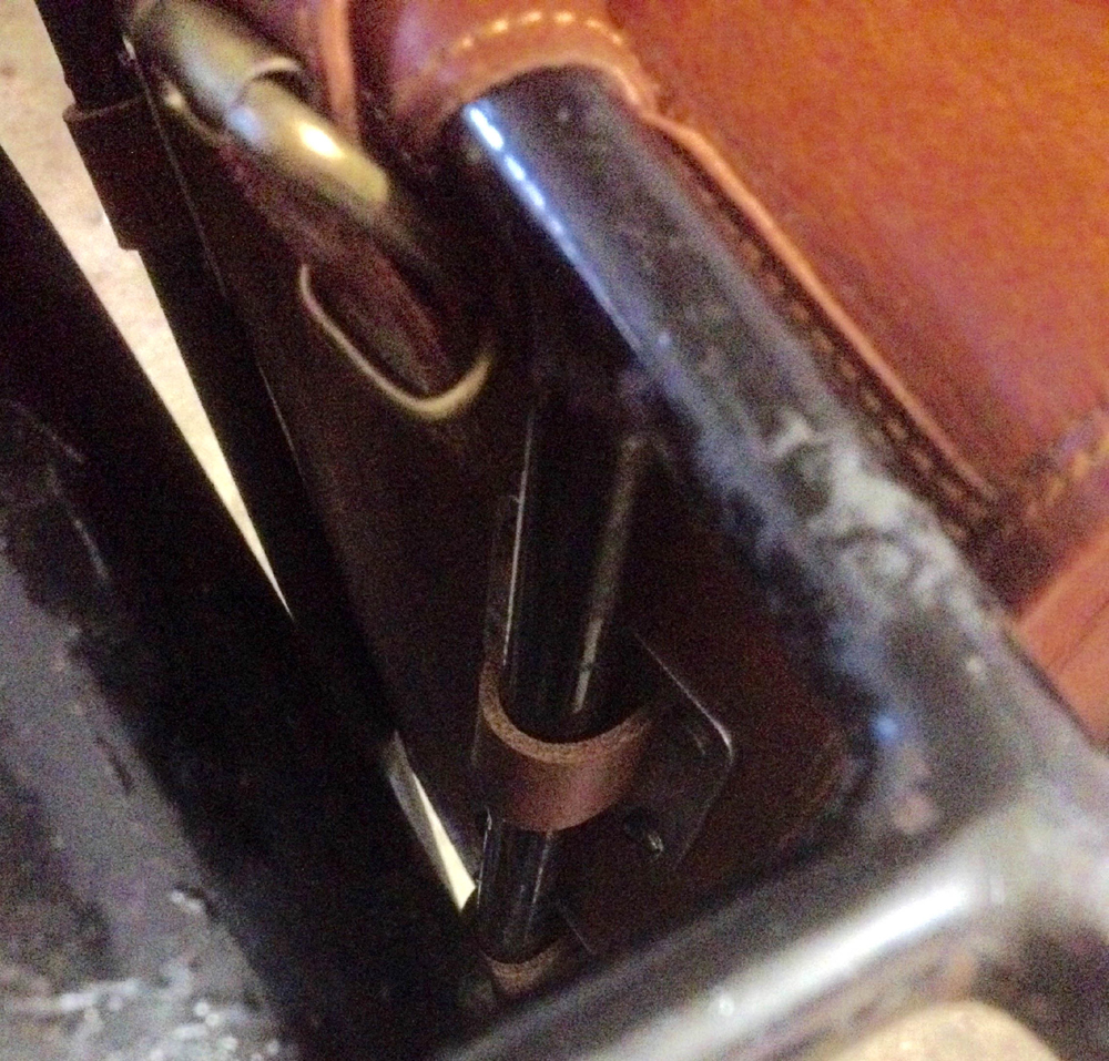 Schwer zu sagen, wann Tacho/Beleuchtung montiert wurden. Direkt beim Kauf? Jahre später? Keine Ahnung. Befestigt waren die Kabel mit Gewebeband, das teergetränkt(?) wirkt. Die Gabel ist ebenfalls an einer Stelle damit umwickelt, um den Lack zu schonen (Halterung Tachowelle). Ab wann gab es solch ein Band? Das wäre ein Idee, wo man schauen könnte... Die Kabel selber sind stoffummantelt und lackiert.