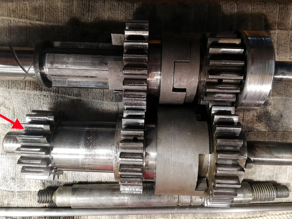 (Das Abtriebzahnrad fehlt auf dem Bild. Aber das Vorgelege, wo es eingreift, sieht man.)