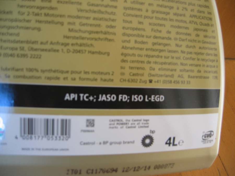 So stieg ich wieder auf ein etwas teureres Öl um, aber leicht günstiger als das ROWE Bioöl ist es: Castrol Power 1 Racing, ebenso vollsynthetisch.