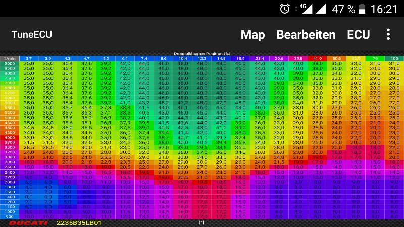 Falls es dir nicht aufgefallen ist, sind das Zündkennfelder. Das hat nichts mit Lambda-Sonde. Dann ist ein großer Unterschied zwischen Steuern und Regel.Steuer ist bei einer Drehzahl und Drosselklappen Stellung einen Punkt im Kennfeld in einen Zündzeitpunkt umzusetzen. Und das geht ausreichend schnell. Regeln ist eine Schleife die selbst Anbassungen vornimmt. Nicht vorteilhaft da andere Einflüsse,zu Beispiel undichte Auspuff Krümmer oder Ansaug Teile Einflüsse auf die Regelung haben. Bei der Ignitech Zündung kann zwischen Berechnung des Zündverzug, und Berechnung des Zündzeitpunktes gewählt werden. Ist abhängig welche Sensor Scheiben du verwendest. Einmal eine Scheibe die den ersten Impulse mehr als maximal Vorzündug und den Zweiten der die Erste Zündung auslöst. Mechanisch vorgegeben, also Kickstarter fähig, löst der zweiten Impuls den Funken. Wenn der Motor läuft, wird die Zündverzögerung aus der veränderten Zeit zwischen den Impulsen im Kennfeld angegriffen. Die Anderen Möglichkeit ist Pro Umdrehung viele Impulse, wovon einer Anderes, zu Beispiel breiter ist.Nicht Kickstarter fähig. Braucht eine Umdrehung zur Bearbeitung. Danach wird der Winkel schneller berechnet, da schnell Winkelbeschleunigung erfasst wird.