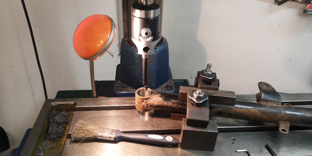 Aus den Erfahrungen von gestern aufbauend, hab ich bis 29,96mm aufgespindelt und den Rest gehont.