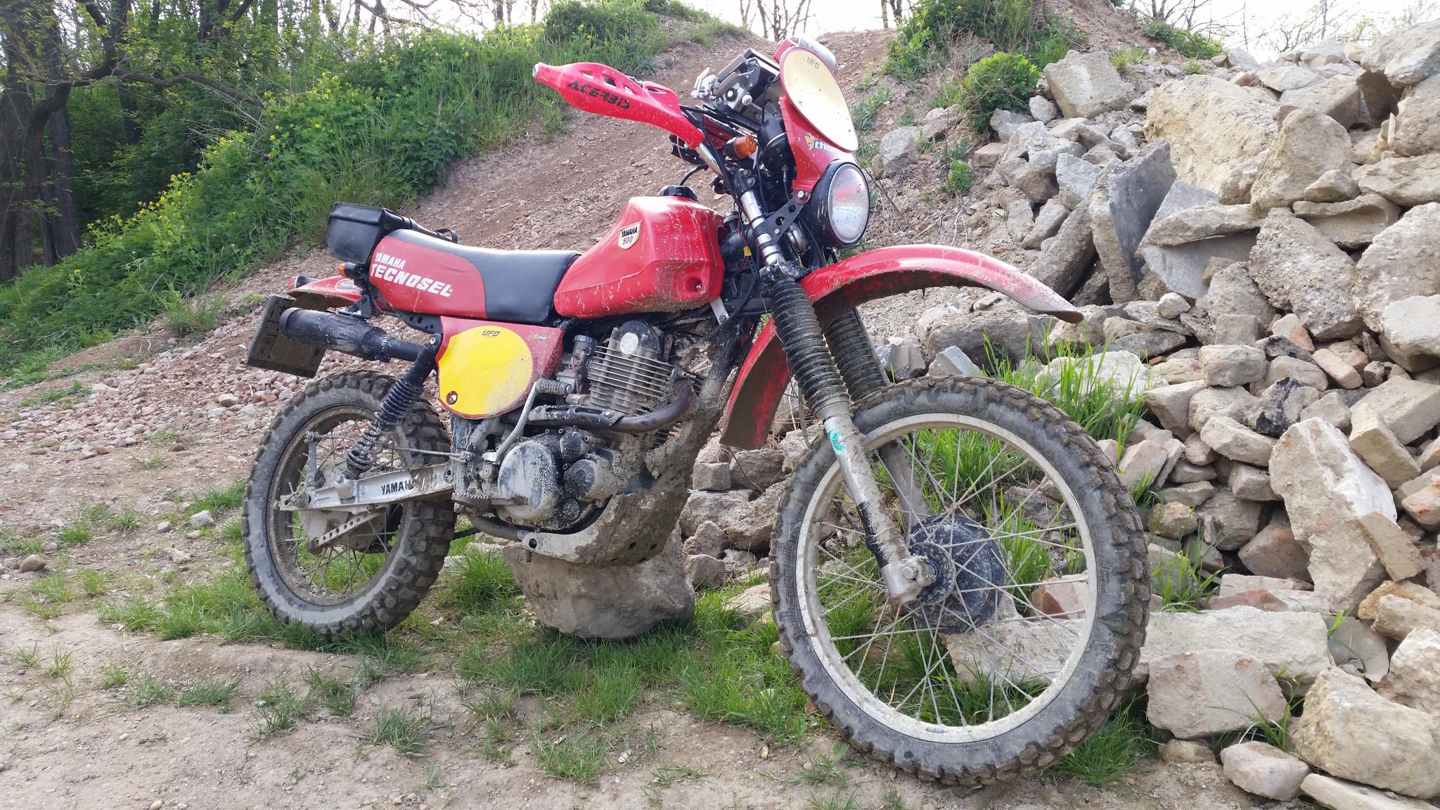 Resume: es geht eigentlich ganz gut. ..im Vergleich zur Crosse ist der Bock halt deutlich schwerer speziell über dem Lenkkopf...das spürt man bei Schlägen und Wellen...da muss man öfter mit dem Lenker korrigieren...und die Traktion hat mit den Strassenenduroreifen gefehlt - speziell am Anfang wo es noch feucht und schmierig war...kommen noch Grobstoller für die Rallye drauf...
