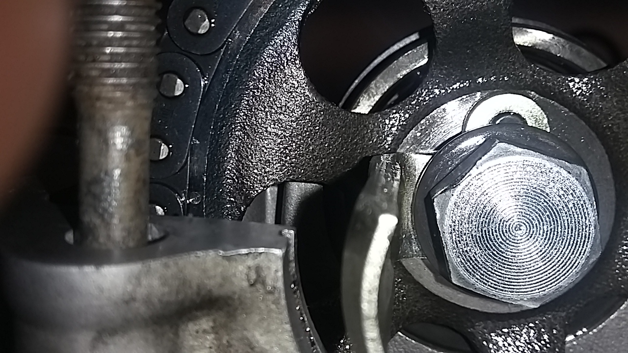 Wenn die Nocke auf Polrad T steht, sollte eine Körnung am Nockenwellenzahnrad in der Trennebene zum Kipphebeldeckel stehen.