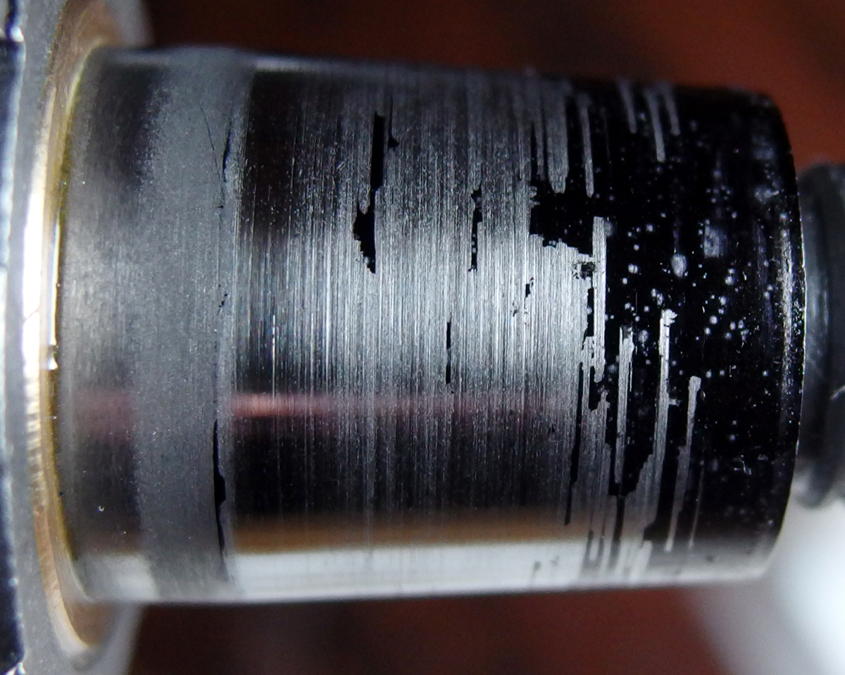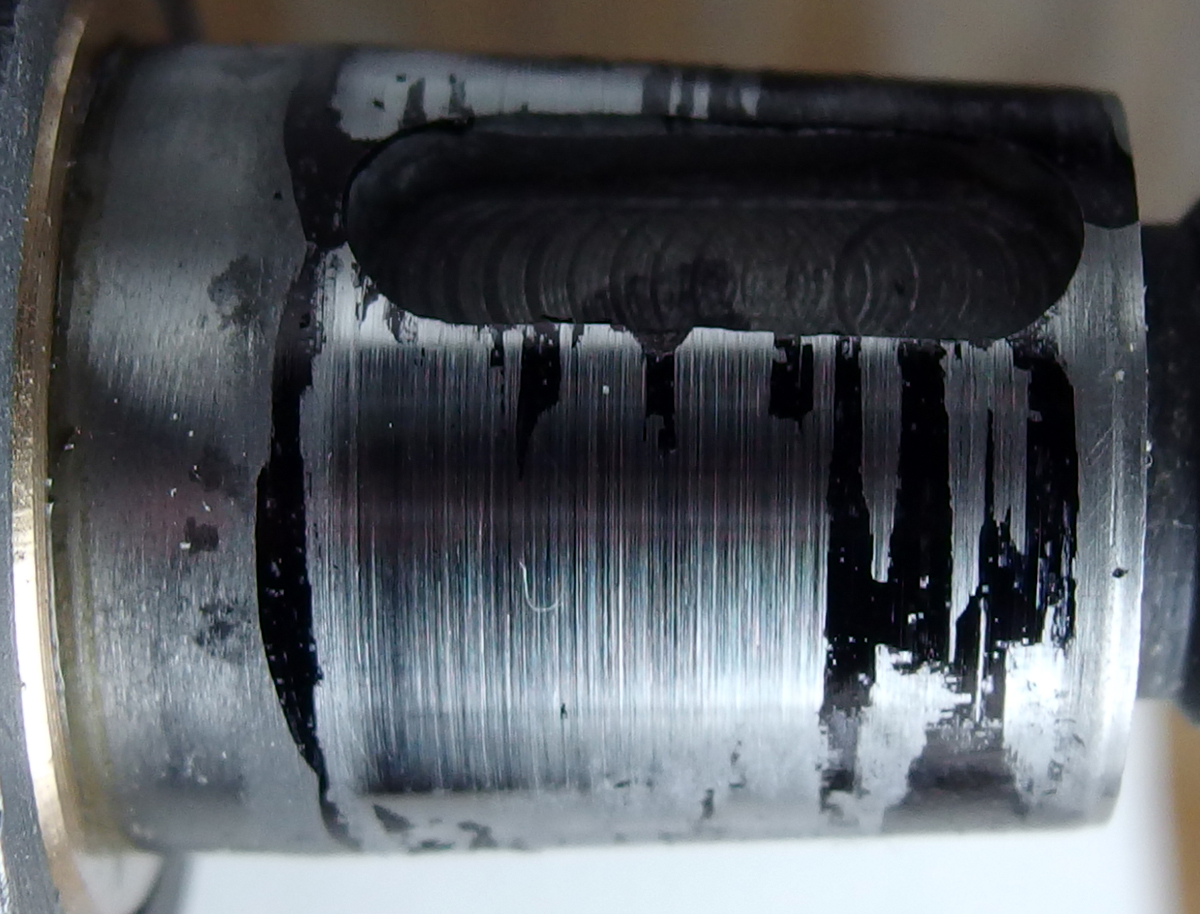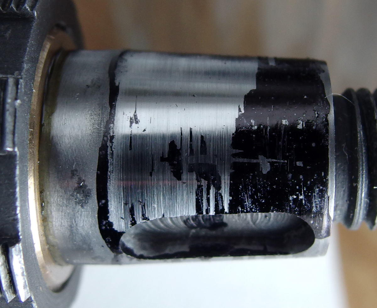 Vermutlich sogar schon zu weit. Keine Ahnung, wie mir das nicht auffallen konnte. Hinten am inneren Mitnehmer, am "Kragen", kann man noch Material runterschleifen. Aber da sitzt ja später wieder die flache Mutter drauf, und direkt dahinter sitzen Ritzel und Sicherungsmutter vom Ritzel, und ich mach jetzt erstmal nix mehr bis die neuen Ritzel hier sind. Dann weiterschauen.