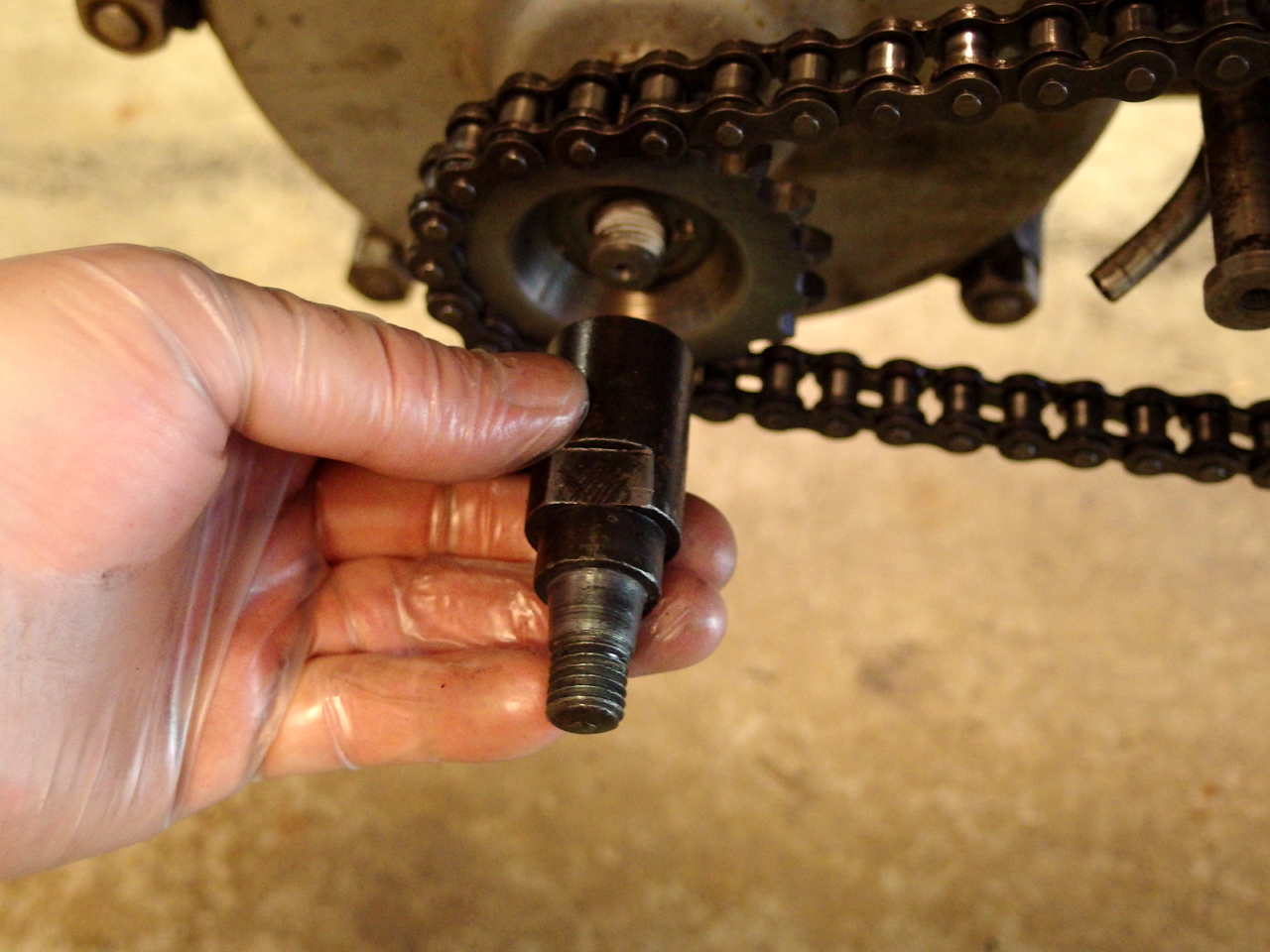 Die Aufnahme der Riemenscheibe (der fette Bolzen, der das Ritzel auf die Kurbelwelle drückt) eiert ebenso. Ob das Gewinde schief ist, oder der Bolzen, oder der Konus... ich weiß es nicht.