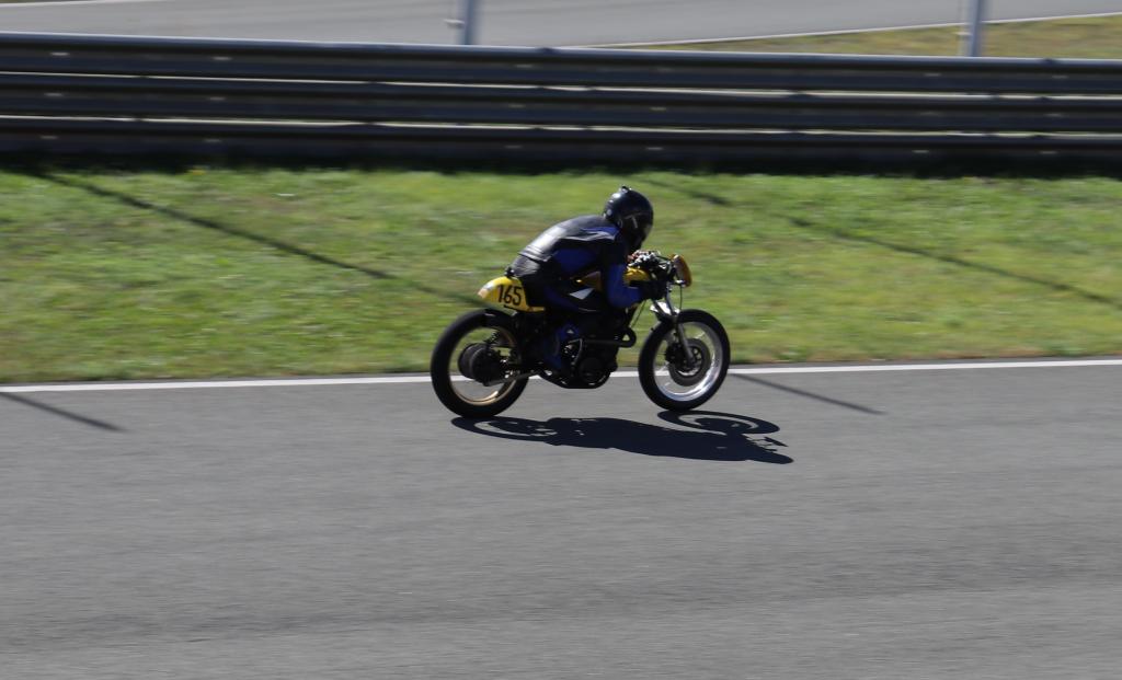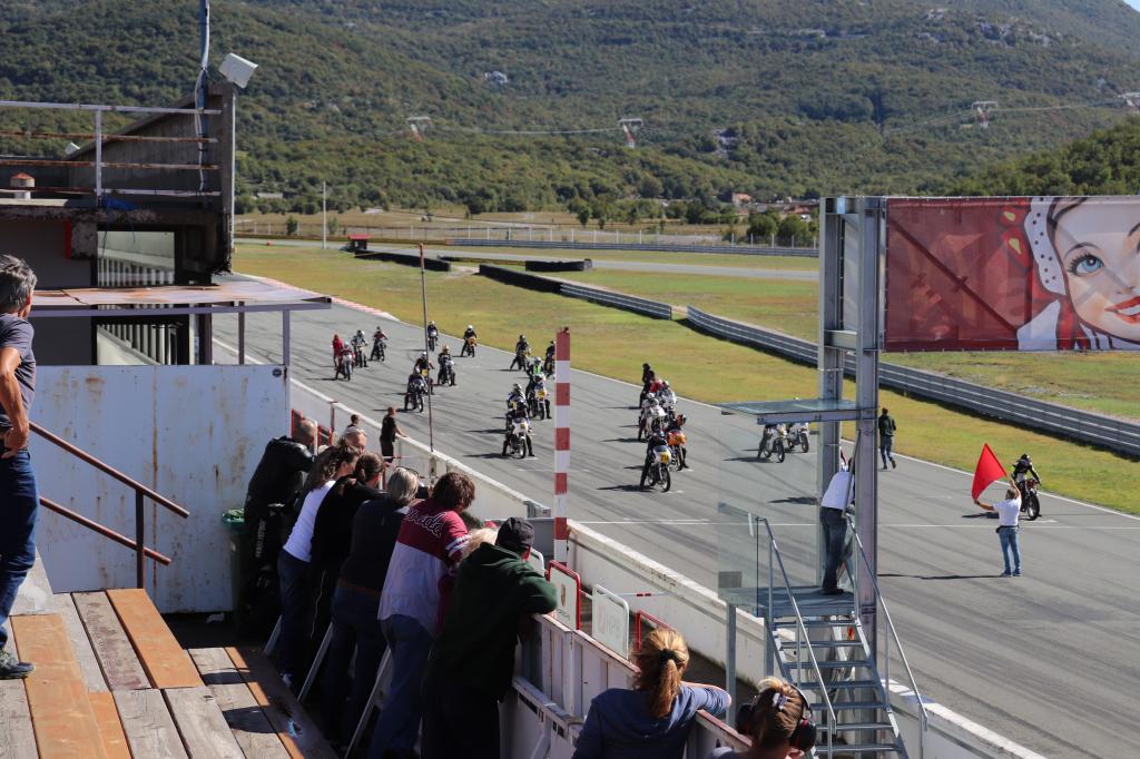Fürs zweiStundenRennen das in Reihengruppen im Abstand gestartet wird, macht der Sepp K. den Starter, um nach dem Durchschreiten aller Startreihen selbst als Letzter aufs Moped zu steigen.