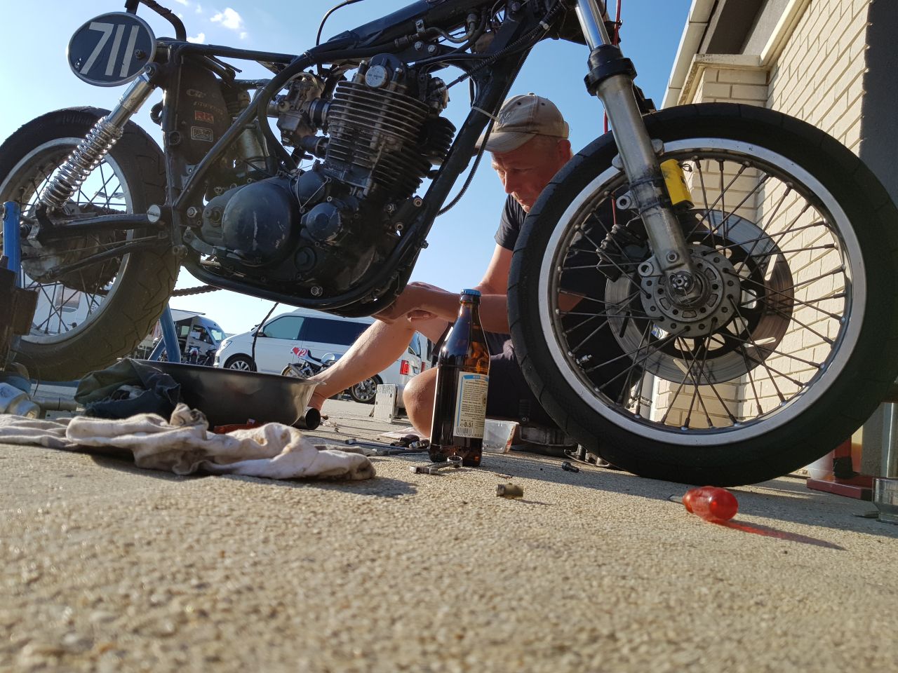 ...die beiden Hondas und die XT vom (Schwager)-Tom haben gehalten, die von Diana hat einiges an Späne produziert...