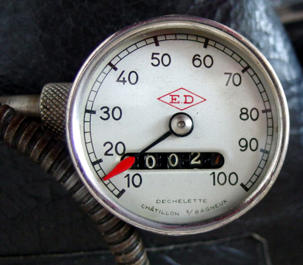 Der Tacho ist zurück... Wurde vom Profi repariert. Leider hat er es nicht geschafft, einen besseren Nullzug hinzukriegen, sprich: Bei ca. 15 km/h bleibt der Tacho auf dem Rückweg hängen. Ein leichtes Klopfen gegen das Gehäuse hilft dann. Nicht weiter dramatisch, aber doch irgendwie schade. So wie ich den Herrn verstanden habe, wäre die Gefahr zu groß gewesen, dass er (stark verformte) Gußteile irreparabel zerstört, wenn er noch weiter gerichtet hätte. Er hat´s wohl mit Ausbuchsen, Richten etc. pp. probiert, stundenlang ("Meine Berufsehre!"), und war dann recht geknickt, als es nicht perfekt wurde. So, wie es jetzt ist, ist er unter dem Kostenvoranschlag geblieben, die Patina wurde erhalten und das Teil funktioniert wieder. Alright...