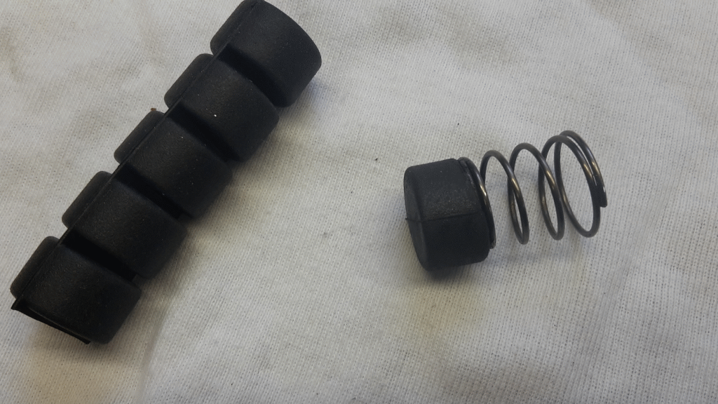 So ein Teil habe ich nicht im Fundus, aber vom Maß her passt ein Absorber Gummidämpfer (SR Zylinder) ganz gut. So einem Teil mit einem glühenden Stück 15er Kupferrohr eine Aufnahme für die Feder draufgebrannt und fertig ...mal schauen wie lange das erfolgreich seinen Dienst verrichtet.