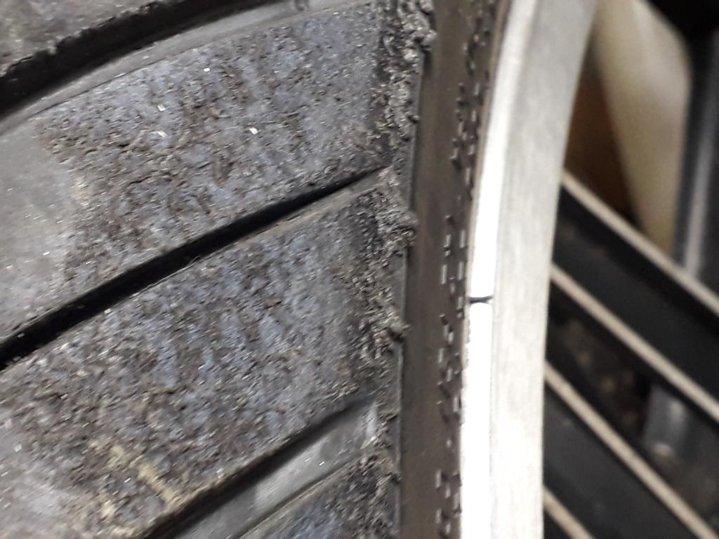 Die Reifen sind gut (und auch noch nicht alt), haben aber in der Endurance keine Zeit zum abhühlen bekommen, Streckenbelag war auch entsprechend heiß, die Reifen wurden bei der Endurance definitiv überhitzt. Gut zu erkennen an der Kleinen. Bis zum Noteinsatz in der Endurance sah der Vorderreifen noch sehr gut aus, danach zeigte der Reifen auf der rechten Seite deutliche Abnutzungsspuren.Bei der Großen hat sich zusätzlich zu den Schmierspuren auch noch ein deutlicher Sägezahn gebildet