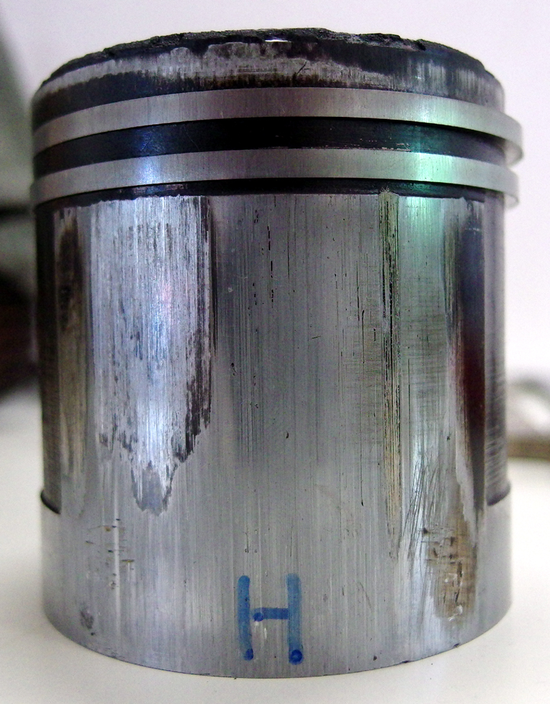 scheint nur gedreht nicht mal gehont zu sein, noch dazu wellig, oder man müßte gucken ob der Zylinder in diesen Bereichen Rippen hat, an denen der Zylinder hier bei Hitze nach innen gewachsen ist.