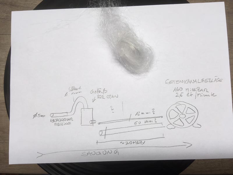 Bei "dünnem" Schlauch (-160 mbar am Gebläse) fördert das Gebläse z.B. nur noch 40 m³/h statt 180 m³/h,