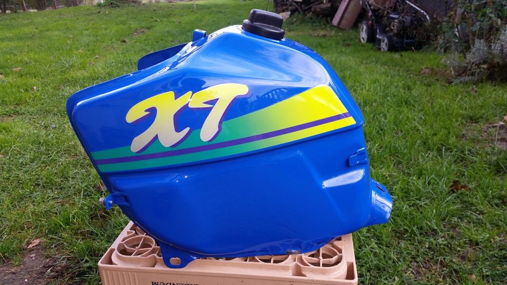 Ich hab mir vor kurzem mein erstes Mopped, eine 1VJ, gekauft. Der Vorbesitzer ist auf die Idee gekommen einen kleinen 13L Tank auf die draufzumontieren.