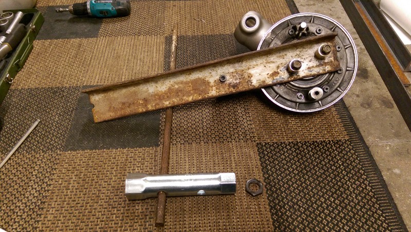 Zum Lösen der Mutter braucht man einen SW 36mm Schlagnuss in lang . Normale Langnuss geht auch. Mit dem Propanbrenner die Mutter anwärmen und mit dem Schlagschrauber öffnen.