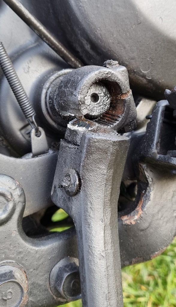 XT600 hat einen wesentlich kürzeren aber dickeren 18-mm-Dorn, auf dem der Hebel mit einer Schraube gehalten wird.