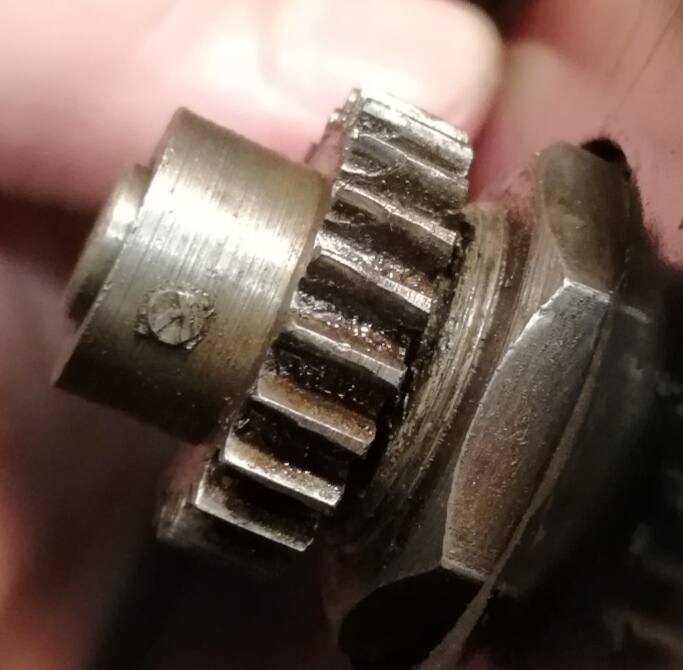 Ansonsten... Der Dosendeckel war krumm und schief, das wurde mit ´ner zusätzlichen Unterlegscheibe ausgeglichen, was wiederum dazu führte, dass der Antrieb vom Tacho nett neben der Spur lief. Keine Ahnung, wie lange schon. Alles zerlegt, gereinigt, entrostet, gerade gebogen, versiegelt. Jetzt schleift nix mehr, und die Zahnräder vom Tachoantrieb stehen wieder so zueinander, wie sie sollen. Hoffe, das hält noch eine Weile.