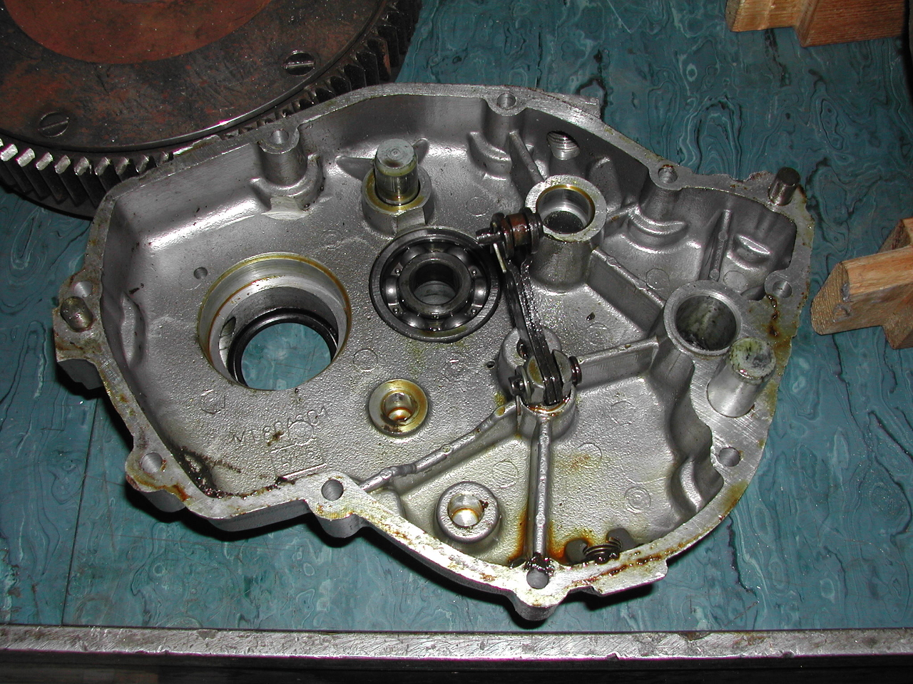 Die Welle wird von einer Madenschraube fixiert ähnlich wie die Welle für den Retourgang. Nur das die Schraube scheints zu lange war, und man sie einfach plan gefräst hat, bis der Schlitz für den Schraubenzieher weg war
