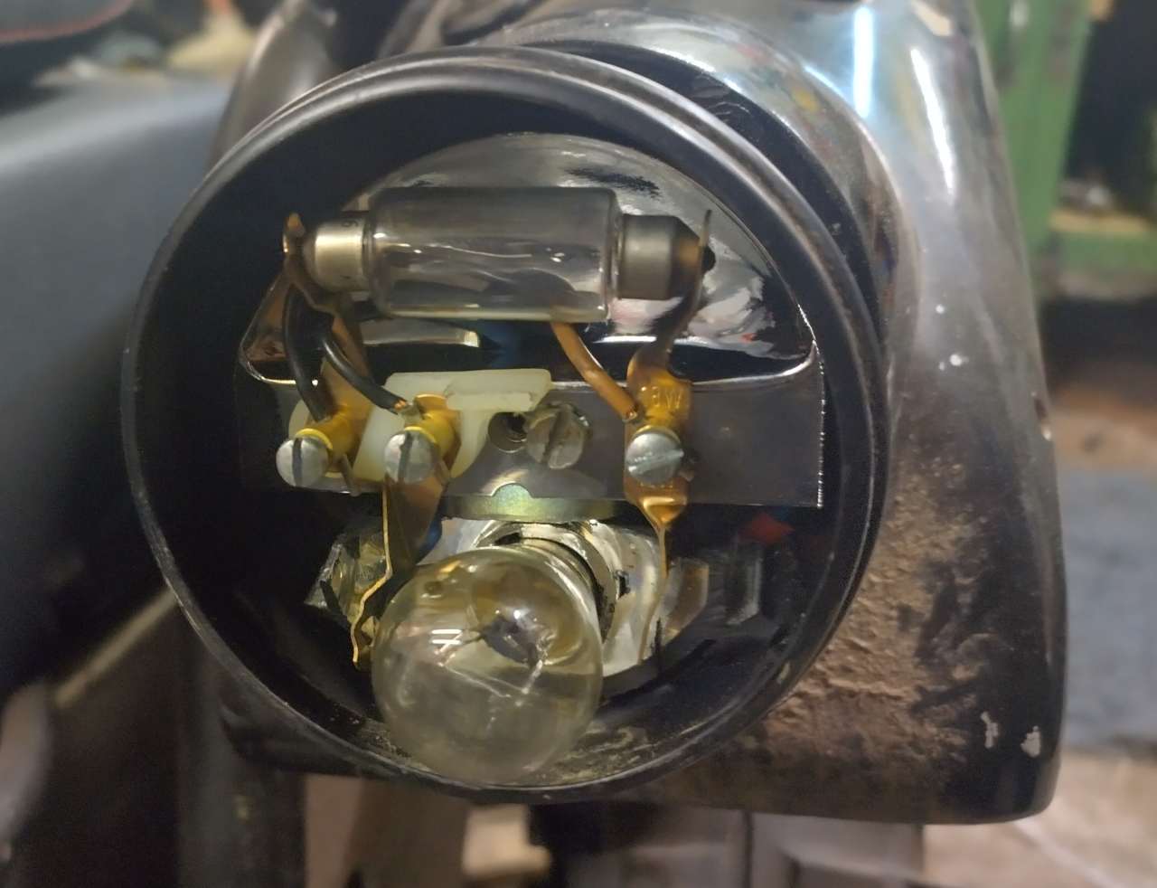 Das war keine gute Idee, die Fassung ist Murks und vor allem die Glühlampe zu nah am Plastik, wodurch es schmilzt. Die dritte Lampe könnte ich mit einem Vorwiderstand realisieren, dann bräuchte ich aber zwei große Sofitten. Auch wieder nix.