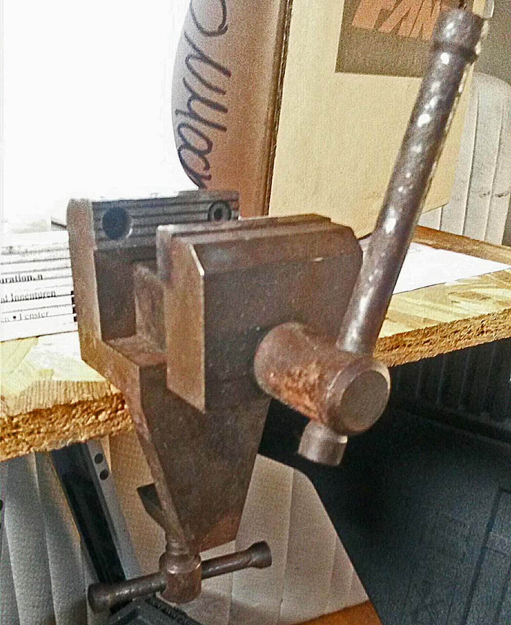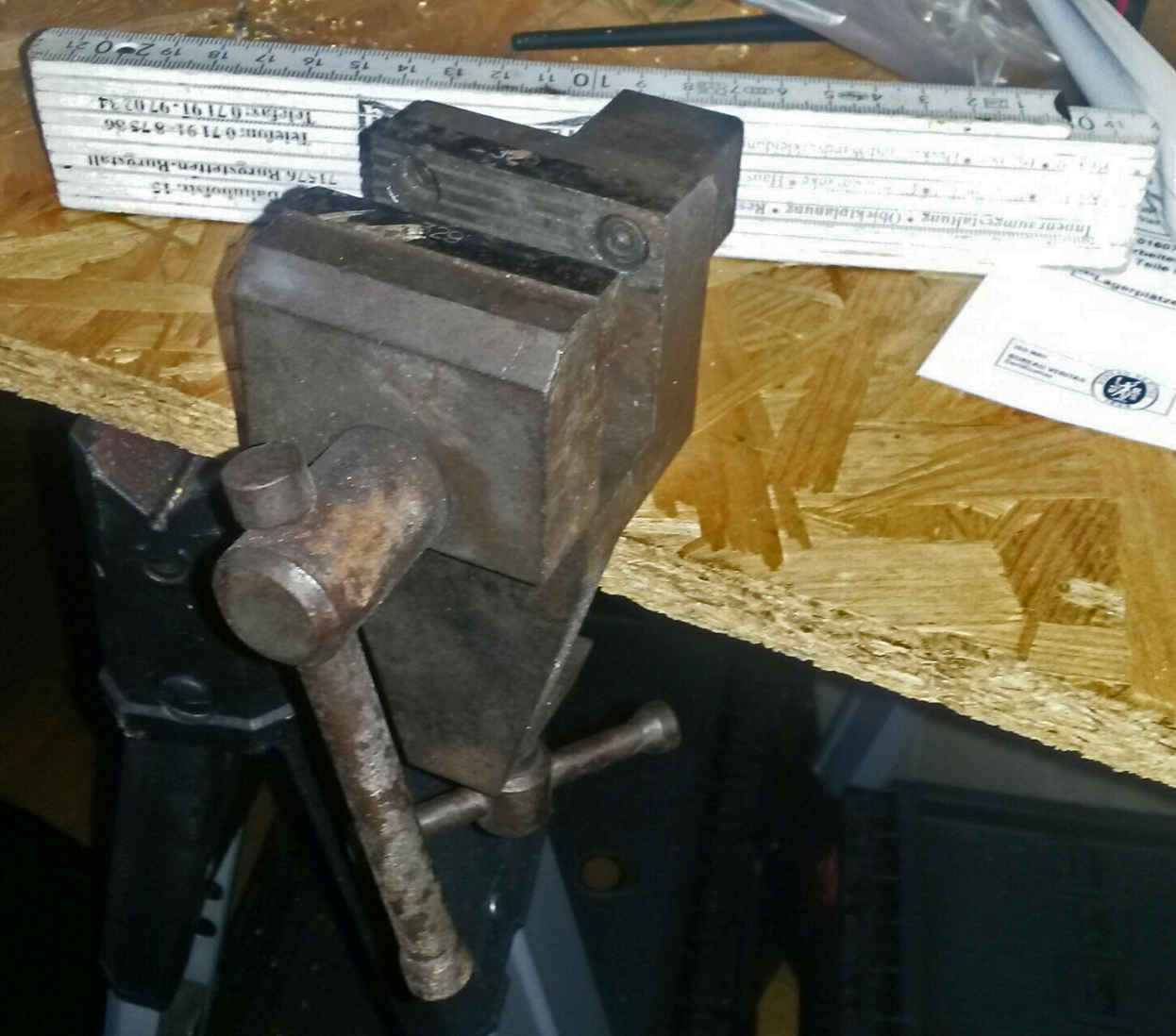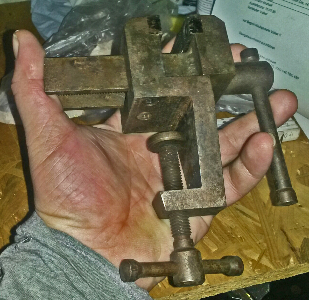 Richtig. Weil ich Salzangst hatte bzgl. des guten Stücks, drum war er gut eingewickelt verpackt. Ich hab ihn aber schon paar mal angeboten - meistens war bei den Unterwegs-Reparaturen jedoch Schluß, ehe es den Schraubstock gebraucht hätte. Oder es ging eh mit Hammer, Zange, Draht Kabelbinder... .