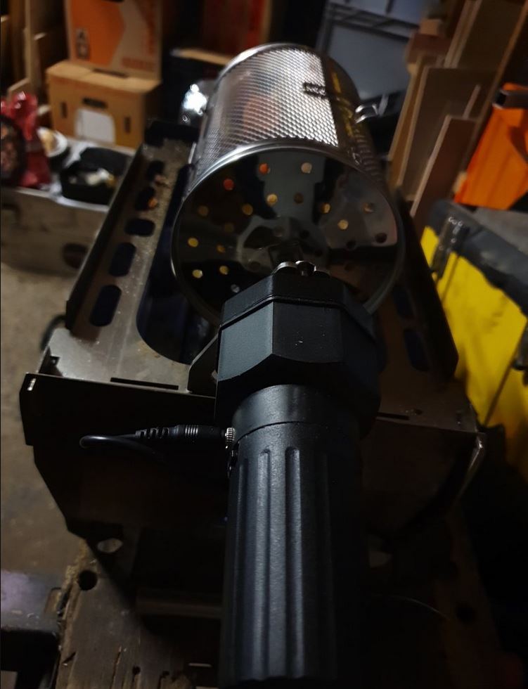 Auch hier muss für den Motorbetrieb der Spieß an beiden Auflagern rund abgedreht werden. Die Cap würde dann als Windschutz verwendet, also ohne Deckel und evt auch ohne Vorderteil. Der Spieß wäre dann auf genau der gleichen Höhe, wie bei Verwendung der oberen Sturmkappe-Position.