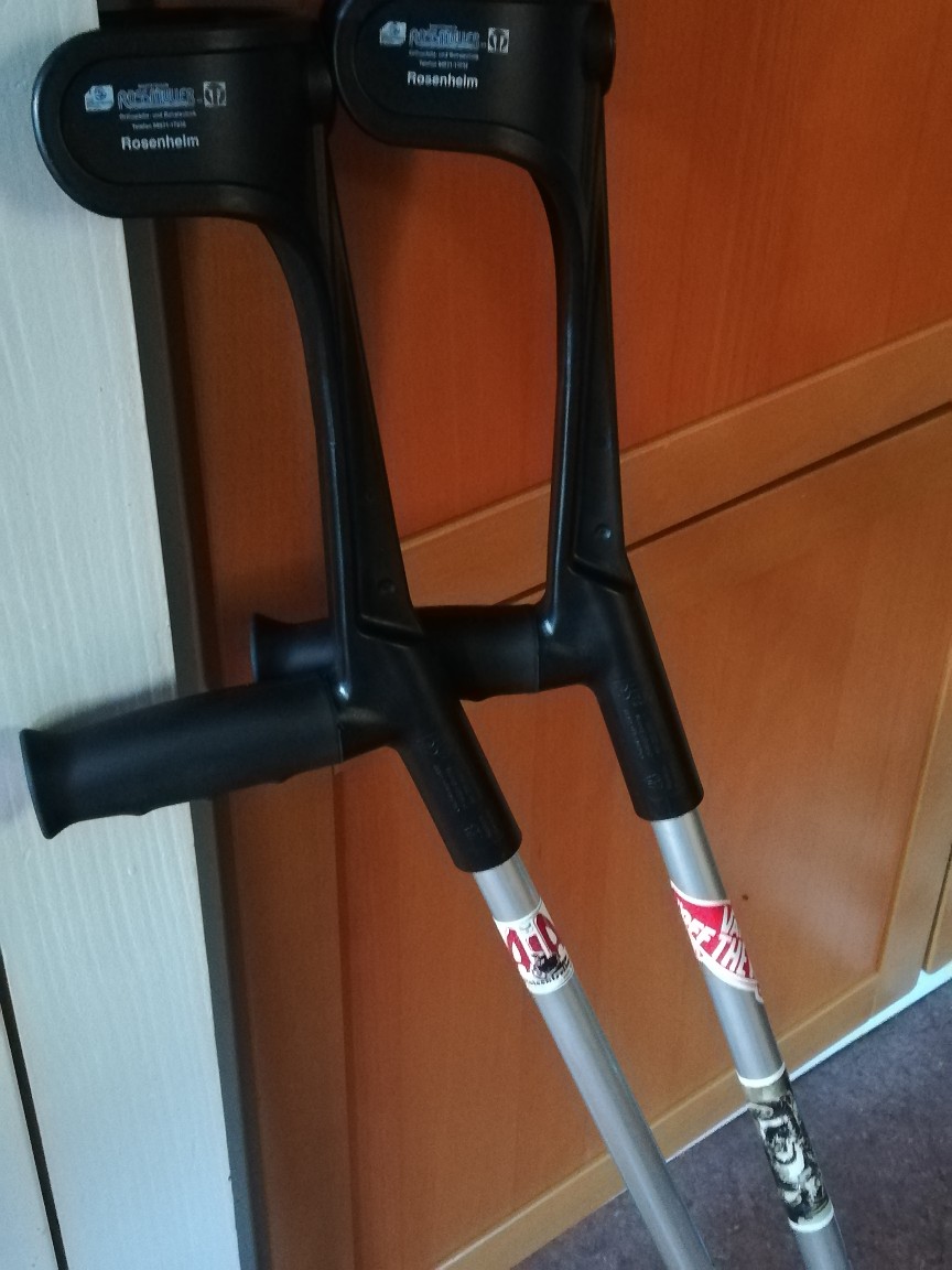 Die freundlicherweise geliehenen AIA - Krücken möchten bei Gelegenheit mal wieder zurück in die Nähe von Rosenheim. Sie sind etwas sperrig für'n Paket, daher "auf diesen Wege" :-D